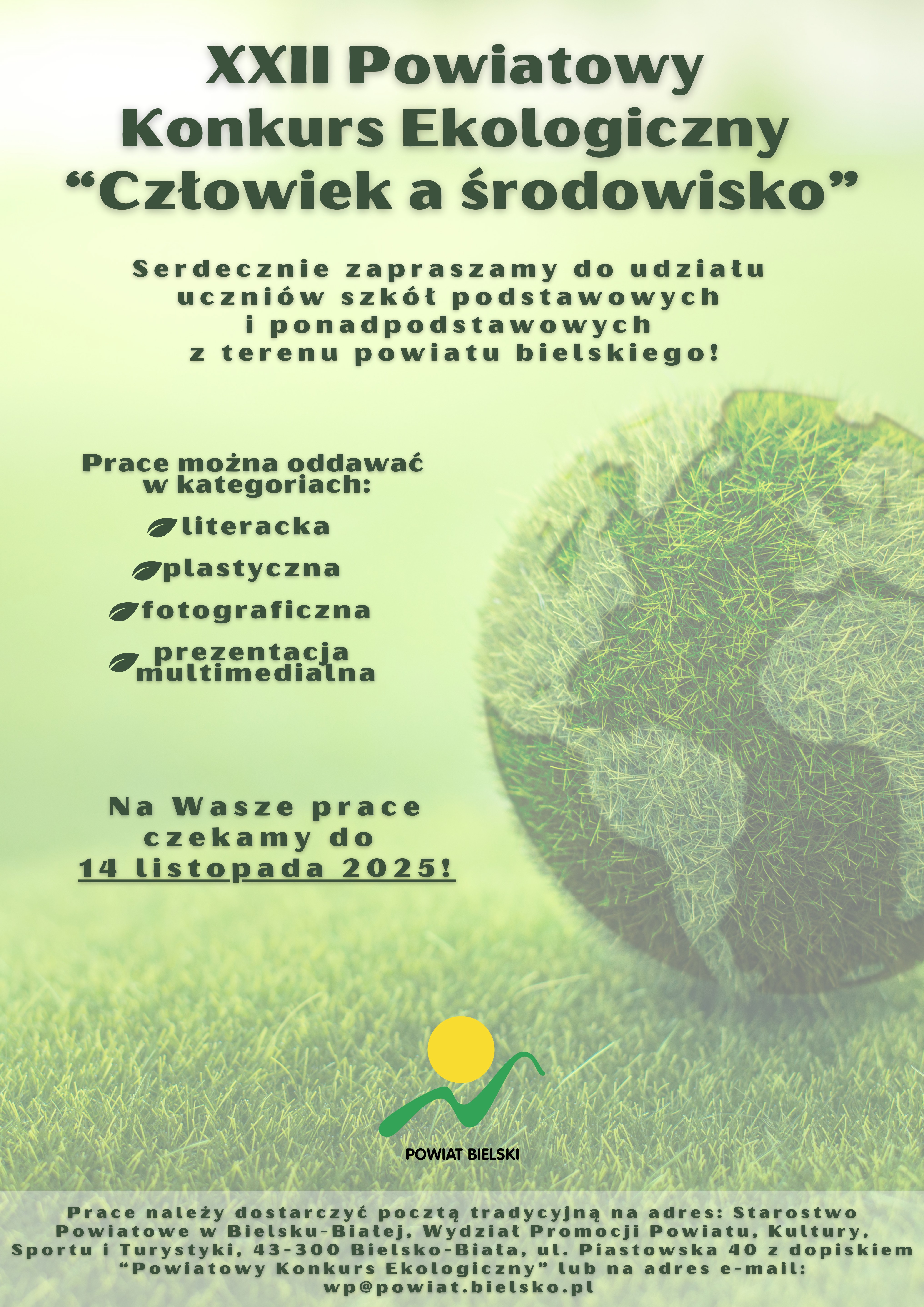 Rozpoczynamy XXII Powiatowy Konkurs Ekologiczny "Człowiek a środowisko"!